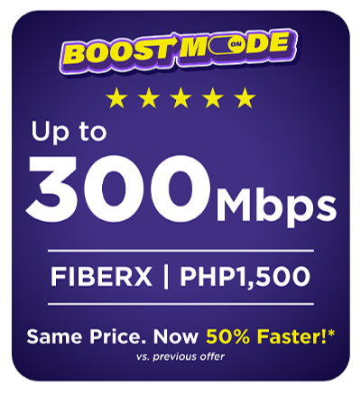 Buckle up for a turbocharged digital experience with top-end gigabit speed for P3,000 and up to 300Mbps for P1,500